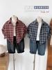Camisas Infantis Estilo Primavera 2026 Estilo Coreano Camisas de Veludo Xadrez para Meninos e Meninas, Tops Casuais Versáteis Soltos de Manga Longa