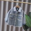 Casaco de camisa jeans para meninos 2024 primavera e outono novo médio e grande vestido de primavera de manga comprida estilo ocidental infantil plutton bonito top