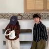Camisa infantil 2022 Inverno Nova listra vertical forrada de lã Baby Boys and Girls Mori Camisa de casaco retrô engrossado