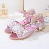 Sapatos de Salto Alto Infantil 2025 Primavera Novo Frozen Elsa Princesa Sapatos de Cristal Meninas Solado Macio Sapatos de Couro Flash