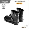 Botas infantis Botas estilo Martin Botas de cano médio para meninas Botas de couro Pretas Botas de Cavaleiro para meninos Botas de algodão com forro de fleece Botas simples Botas baixas