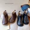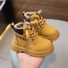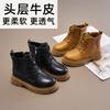 A primeira camada de couro de vaca infantil pequenas botas amarelas primavera e outono meninos estilo britânico botas martin meninas botas curtas botas simples botas grandes botas infantis