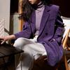 Blazer Roxo de Veludo Cotelê para Mulheres 2025 Novo Estilo Retrô Elegante Solto Casual Top de Terninho Pequeno