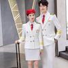 Terno Profissional de Primavera e Outono com Abotoadura Dupla para Homens e Mulheres Azul Marinho Uniforme de Tripulação de Trem de Alta Velocidade Comissária de Bordo