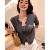 Cardigan Tricot Fio Prata Toque de Pena Hanyuan Apparel/ Conjunto Casual Feminino Modelo Novo 2026