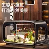 Aquário Pequeno para Sala de Estar 2025 Novo Conjunto Completo de Paisagismo Doméstico Aquário Ecológico com Tampa Aquário Transparente de Mesa para Peixes Dourados