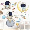 Adesivo de astronauta espacial de desenho animado para decoração de quarto infantil, sala de estar, adesivo de parede de planeta cósmico