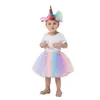 Nova Saia de Unicórnio Infantil Europeia e Americana Saia Arco-Íris Conjunto de Saia com Faixa de Cabelo de Unicórnio de Malha
