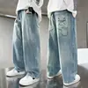 Calças masculinas estação primavera e outono crianças médias e grandes adolescentes 2025 moderno menino estilo de rua calças jeans longas infantis casuais versáteis