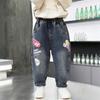 8909 Calças Infantis Estilo Primavera e Outono Jeans Infantil Estilo Coreano Calças Curvas para Bebê 2026 Novas Calças Longas de Pernas Largas Tendência