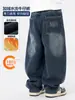 Calça Jeans Grossa Forrada com Fleece para Meninos 2025 Nova Outono e Inverno Reta Solta Estilosa para Crianças Maiores