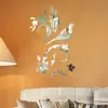 Adesivos de Parede Murais com Galhos de Pássaros Espelho Acrílico 3D Alto Relevo Decoração de Murais para Sala de Estar Quarto Parede da TV
