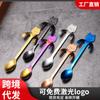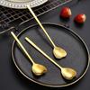 Amazon 304 Colher de Aço Inoxidável Cabo Longo Talheres Banhados a Titânio Colher de Gelo Cor Garfo Coreano Colher de Mistura Criativa