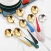 Nova 304 Hot Spoon Aço Inoxidável Engrossado Colher Redonda Aço Inoxidável Ouro Pintura banhada Tinta Creative Dessert Spoon