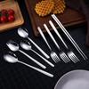 Fabricante coreano 304 colher de aço inoxidável espessa colher de mistura casa estendida alça de jantar colher de café entrega de uma peça