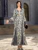 Vestido Muçulmano BA5244 Decote V Cetim Estampado Bordado à Mão com Miçangas Elegante Manga Longa