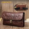 Bolsa de Celular Retrô de Couro de Vaca Italiano para Pendurar na Cintura Transversal Viagem ao Ar Livre Multifuncional com Zíper Bolsa de Cintura para Celular de Tela Grande