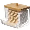 Cotton Swab Storage Box Bamboo Tampa Acrílico Portátil Container Redondo Cosmético Algodão em Pó Puff Storage Cotton Swab Maquiagem Remoção Caixa de Algodão