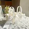 Cesta de Mão de Cetim Branco com Renda Estilo Ocidental Cesta de Flores Especial para Daminha de Casamento Cesta de Flores com Laço de Pérolas