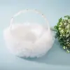 Cesta de Flores com Pena para Casamento Ocidental Renda Branca Leite Decoração de Cetim Cesta de Frutas Cesta Portátil Especial para Menina das Flores Espalhar Pétalas