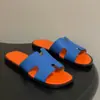 Sandálias de Couro Genuíno Estilo Unissex Família H Cruzamento de Fronteira Moda Color Blocking Verão Antiderrapante Resistente ao Desgaste Chinelos para Uso Externo