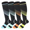 Meias de compressão para panturrilha coloridas listradas meias de pressão para ciclismo ao ar livre corrida esportes fitness meias elásticas
