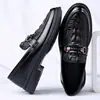 2024 Outono e Inverno Novo Tamanho Grande Transfronteiriço Sapatos de Couro Mocassins Brilhantes Slip-On Sapatos de Couro para Casamento de Negócios Sapatos Masculinos Modernos 48
