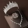 Colar Tiara Coroa Brincos Atmosfera Vintage Strass Coroa de Aniversário Acessórios de Cabelo Noiva Vestido de Casamento Terno de Três Peças