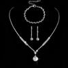 Jóias para Fotografia de Casamento Requintado Redondo Versátil Banhado a Prata Colar com Pingente Brincos Clipes de Orelha Conjunto de Pulseira Jóias