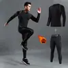 Roupa de compressão de secagem rápida com forro de lã para esqui masculino, roupa térmica de inverno, roupa de compressão, conjunto esportivo para corrida e perda de peso.