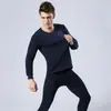 Novo Estilo Slim Fit Roupa Íntima Térmica Masculina Cor Sólida Gola Redonda Lã Espessa Outono Roupas e Calças