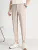 Calças Britânicas Casuais de Negócios Calças Masculinas Pretas Elásticas na Altura do Tornozelo Estilo Coreano Slim-fit Calças de Terno Elegante Verão