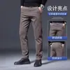 Calças casuais elásticas de quatro lados para primavera e outono, calças masculinas justas para jovens, calças de negócios que não precisam passar, calças de cor sólida sem bolinhas