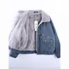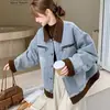 Jaqueta Jeans Azul de Lã de Cordeiro Estilo Coreano com Painéis, de Botão Único, para Mulheres 2025 Outono e Inverno Novo Estilo Jaqueta de Algodão Retrô para Pessoas Baixas