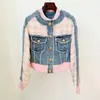 Jaqueta Jeans Feminina Primavera e Outono 2024 Jaqueta de Primavera Renda Gatinho Estilo Coreano Moderna Casual Jaqueta Jeans T20