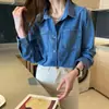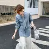 Camisa Jeans Feminina Outono 2023 Solta Slim Retrô Camisa de Manga Longa Camada Design Nicho Top Jaqueta