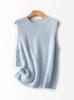 2025 Novo Outono e Inverno Lã Pura Gola Redonda Tricô Colete para Mulheres Cor Pura Solto Elegante Versátil Regata Sem Mangas