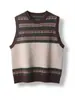 2025 Novo Outono e Inverno Retrô Lã Pura Gola Redonda Colete Tricotado Feminino Jacquard Sem Mangas Camadas Pulôver Colete
