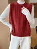 2025 Novo Outono e Inverno Lã Pura Gola Alta Tricotado Colete Cardigã Torcido Quente Sem Mangas Dupla Face Top