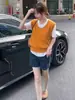 Love and Nancy Colete de Tricô Minimalista de Verão com Decote V 100% Algodão Versátil para o Trabalho e Lazer Feminino 11487