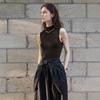 Suéter de Tricô Hanyuan Apparel/Alta Densidade com Quatro Pontos, Sem Mangas, Gola Alta Curta, em Quatro Cores