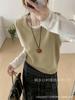 Colete Tricotado Versátil de Lã Pura, Macio, Ceroso, Cor Lisa, Gola V Profunda, Sem Mangas - Novo Outono 2025 G101813