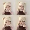 Urso de pelúcia chapéu de bebê outono e inverno chapéu de bebê cachecol de uma peça de duas peças tampa de proteção de ouvido quente para crianças super bonito