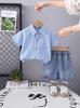 Conjunto de Camisa Xadrez Pequeno de Manga Curta para Meninos 2025 Verão Novo Estilo Estilo Menino Conjunto de Manga Curta de Camisa Xadrez Pequena