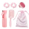 Venda Quente Transfronteiriça Conjunto de Cuidados com os Cabelos Feminino Pente Alisante Rosa Frasco Borrifador de Alta Pressão Escova de Shampoo Anel de Intestino Grosso Conjunto de Cinco Peças