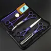 Conjunto de 3 peças de Tesouras para Pet Grooming 7,0 polegadas Violeta Pintura Assada: Tesoura Reta, Tesoura Curva, com Pente Rastrilo
