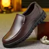 Sapatos masculinos de couro com solado de borracha, respiráveis, ideais para pais de meia-idade e idosos, ideais para atacado.