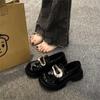 2025 Novo Outono e Inverno Lã Laço Salto Médio Grosso Boca Rasa Versátil Slip-On Mary Jane Quente Sapatos Femininos