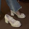 Sapatilhas de Salto Grosso Modernas e Versáteis Sapatilhas Mary Jane Francesas com Laço Delicado para Mulheres 2025 Primavera e Verão Novo Estilo