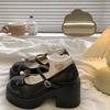 Sapatos femininos Mary Jane estilo fada com saia 2024 sapatos de casamento sapatos de dama de honra plataforma à prova d'água salto grosso pequeno salto alto sapatos de camada única
